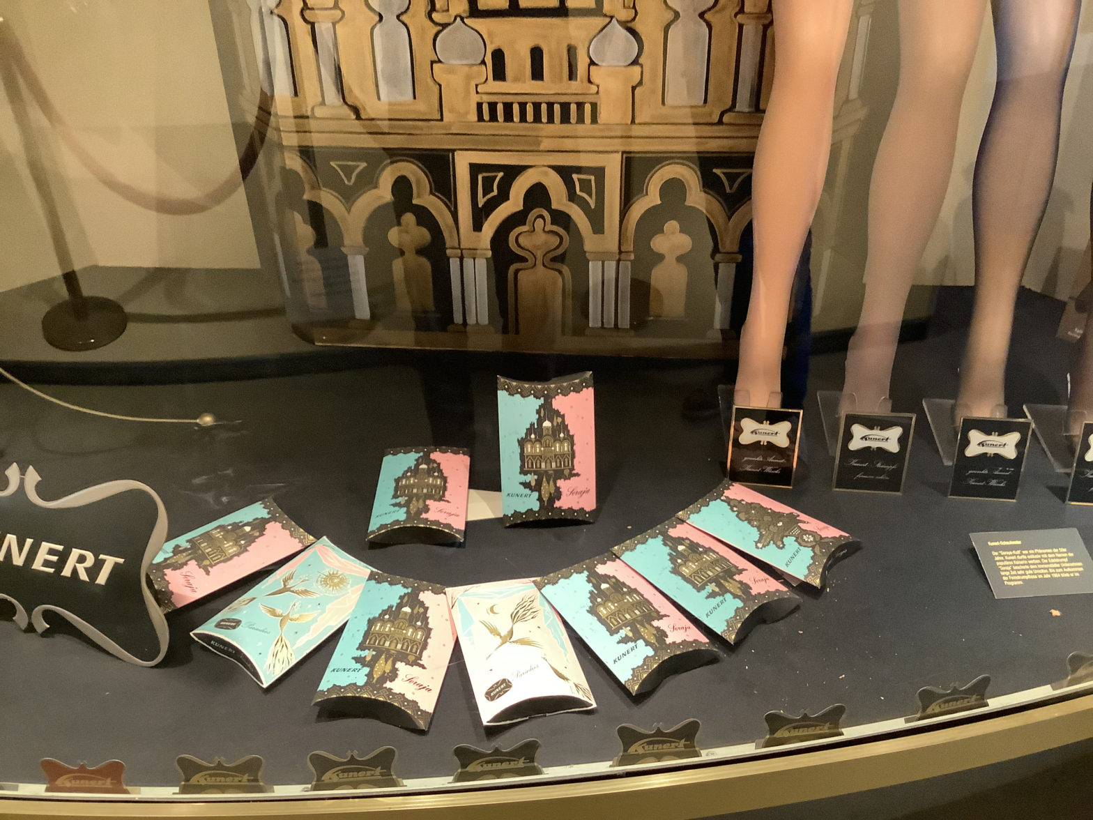 „Repassieren“ nannte man das Auffangen von Laufmaschen und Reparieren, als die Feinstrümpfe noch exklusiv und kostbar waren. In den 1950er Jahren entwarf die sehr erfolgreiche Werbung für Damenstrümpfe eine Gegenwelt zum entbehrungsreichen Nachkriegsalltag und vermittelt einen Traum von Luxus, Eleganz und Leichtigkeit. Kunert gelingt 1954 mit der Damenstrumpf-Kollektion „Soraja“ eine Kult-Marke für die Wirtschaftswunderzeit zu erschaffen, die benannt ist nach einem damaligen Star der Regenbogenpresse, der Ehefrau des letzten persischen Schahs.