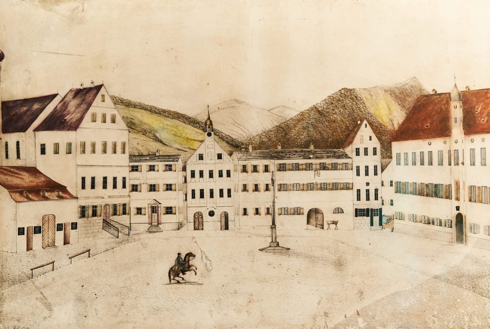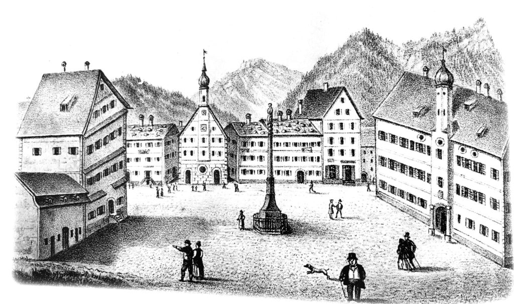 Die Ansicht des Marktplatzes von Norden im Titelbild zeichnete der Maler Ludwig Caspar Weiß (1793 Rettenberg–1867 Immenstadt) um das Jahr 1806, noch bevor er im Alter von 19 Jahren als Schüler an der Königlichen Akademie der Bildenden Künste in München eingeschrieben war. Ludwig Caspar Weiß gehört der Künstlerfamilie Weiß aus Rettenberg an.