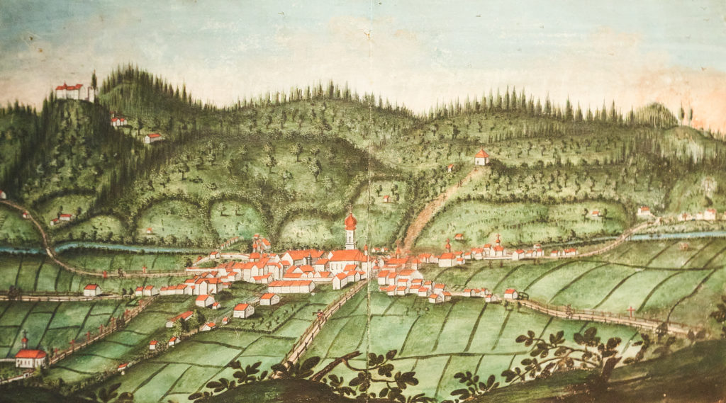 Bei dieser aquarellierten Federzeichnung handelt es sich um die älteste, uns bekannte Gesamtdarstellung der Stadt.